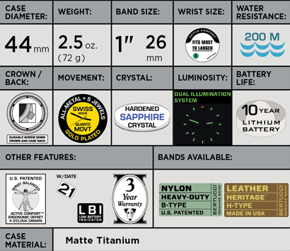The A-4T Super Yankee™ Illuminated design is inspired by vintage U.S. Military field watches. It features an impressive list of non-compromised performance features, materials and components… the result is a field watch that is unmatched in the market… delivering long term field proven reliability, accuracy, illumination performance, durability, and light weight Active Comfort™.
