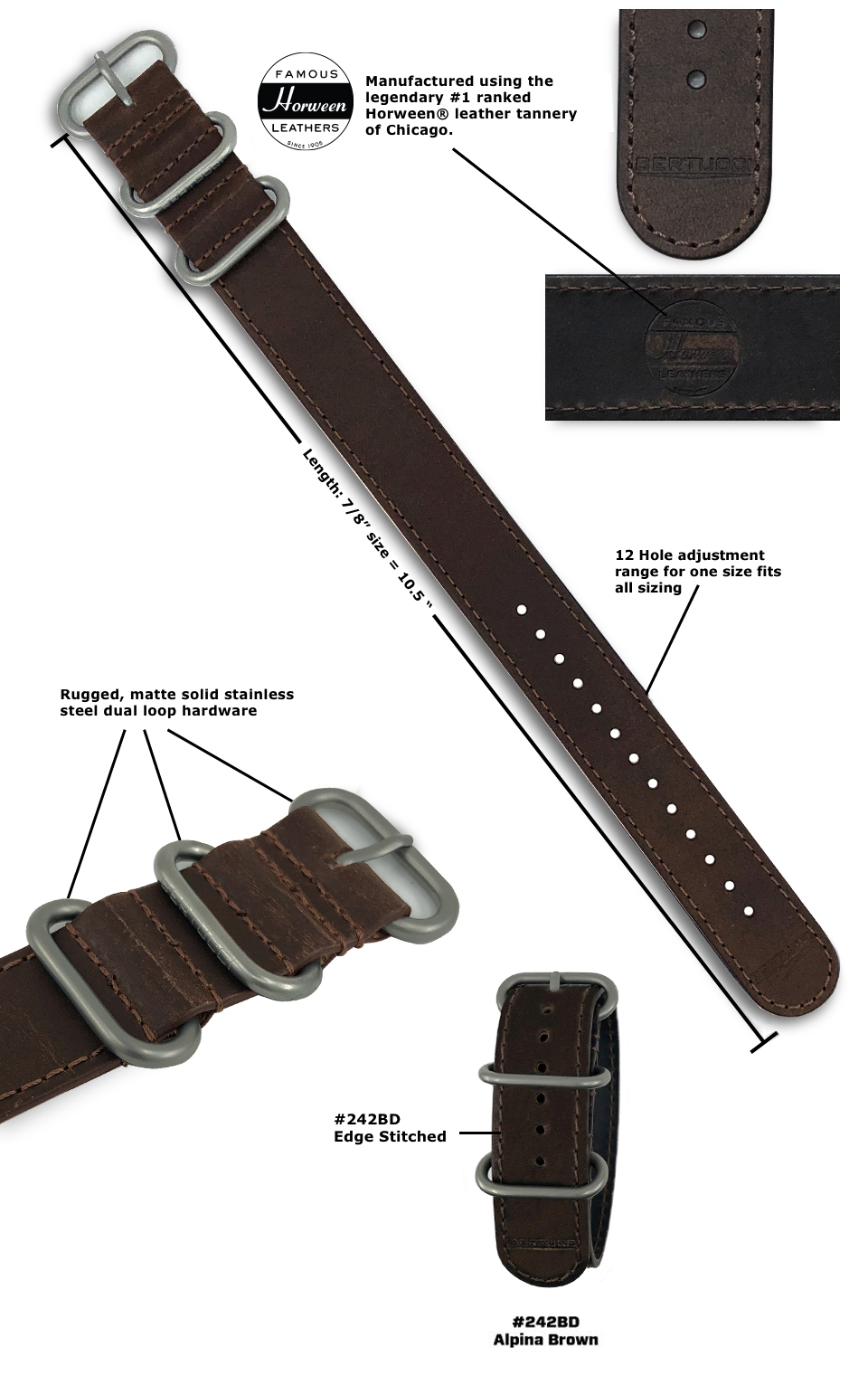 The Bertucci® Heritage Leather band™… Handcrafted in the USA from genuine Horween® shell cordovan… The ultimate leather band for the Ultimate Field Watch™