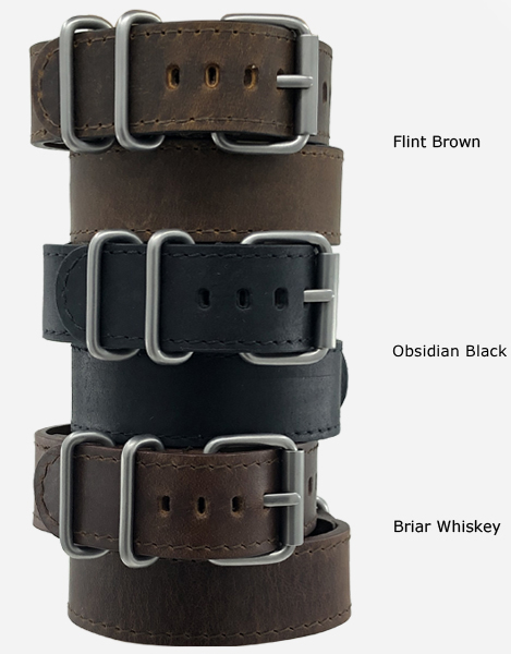 Band offers long lasting rugged refinement, active comfort, and ergonomics. The M-Type features high performance top grain leather from the finest tanneries in the USA, durable box and edge stitching, a fully lined construction, and a stainless steel roller buckle and keeper loop. The Montanaro™ Leather band is simply unmatched in the marketplace as it offers light weight, durability, and comfort. Made in the USA. |