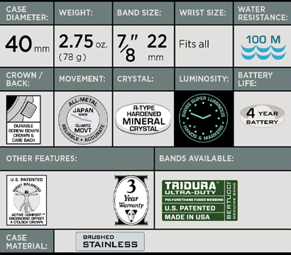 • Equipped with our legendary U.S. Patented solid stainless steel Uni-body™ case for extreme durability and comfort