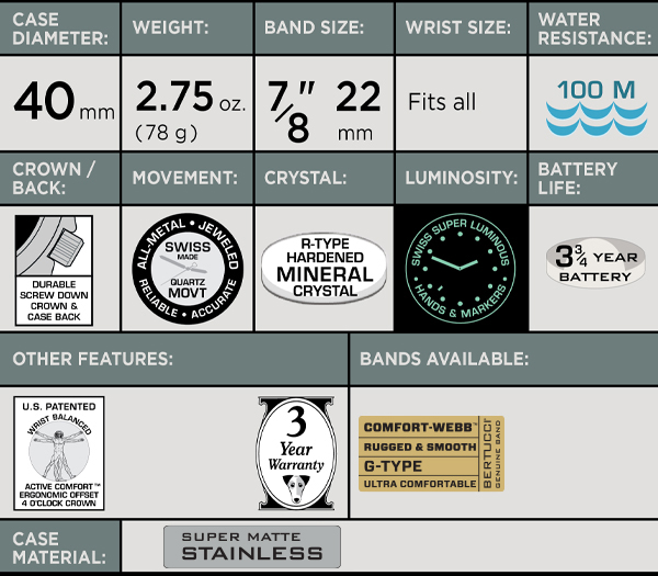 Office Hours: 8:30 – 5:00 M–F central standard time, USA Bertucci® Ultimate Field Watch™ |