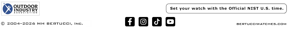 Personalize your Bertucci® Watch with laser engraving. Available on any titanium or stainless steel watch, monogram letters are limited to three and font type and position as the images below. Cost is $45 on new watch. Please allow three weeks for delivery, contact us with any questions. |